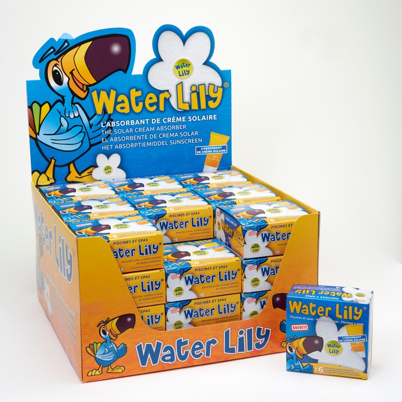 Posé à la surface de l’eau dans le panier d’un skimmer, Water Lily® retient les substances grasses ramenées par la circulation d’eau. Water Lily® absorbe les polluants : crèmes et huiles solaires, pollens, pollution atmosphérique. Il facilite ainsi le nettoyage de la piscine ou du spa.