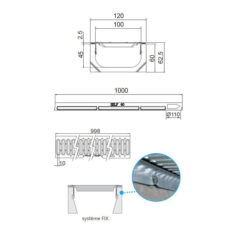 DESCRIPTION Caniveau de drainage en béton polymère largeur 100, hauteur 60 avec grille passerelle FITT A15 en acier galvanisé, fente 10mm. AVANTAGES DU PRODUIT •Grille: grille passerelle en ... Plus de détails