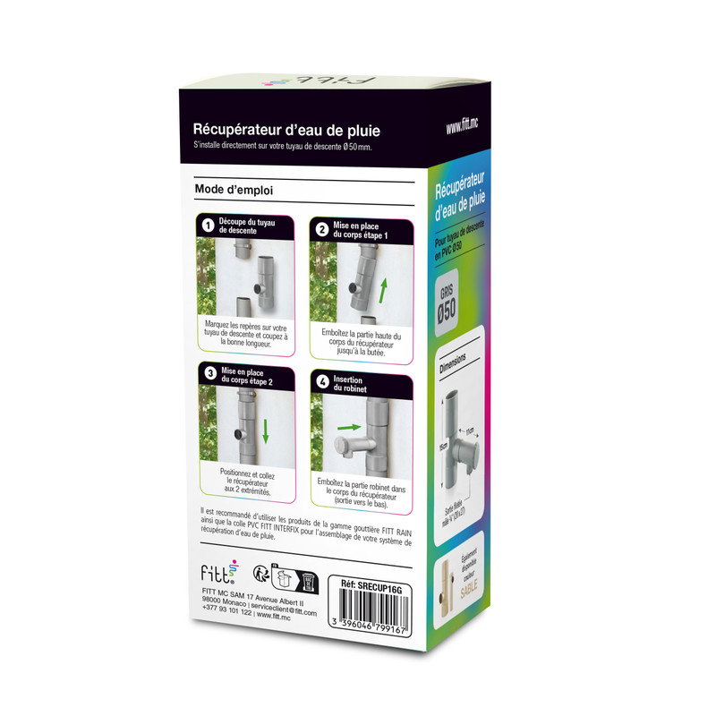 Collecteur récupérateur d’eau de pluie pour tuyau de descente Ø50