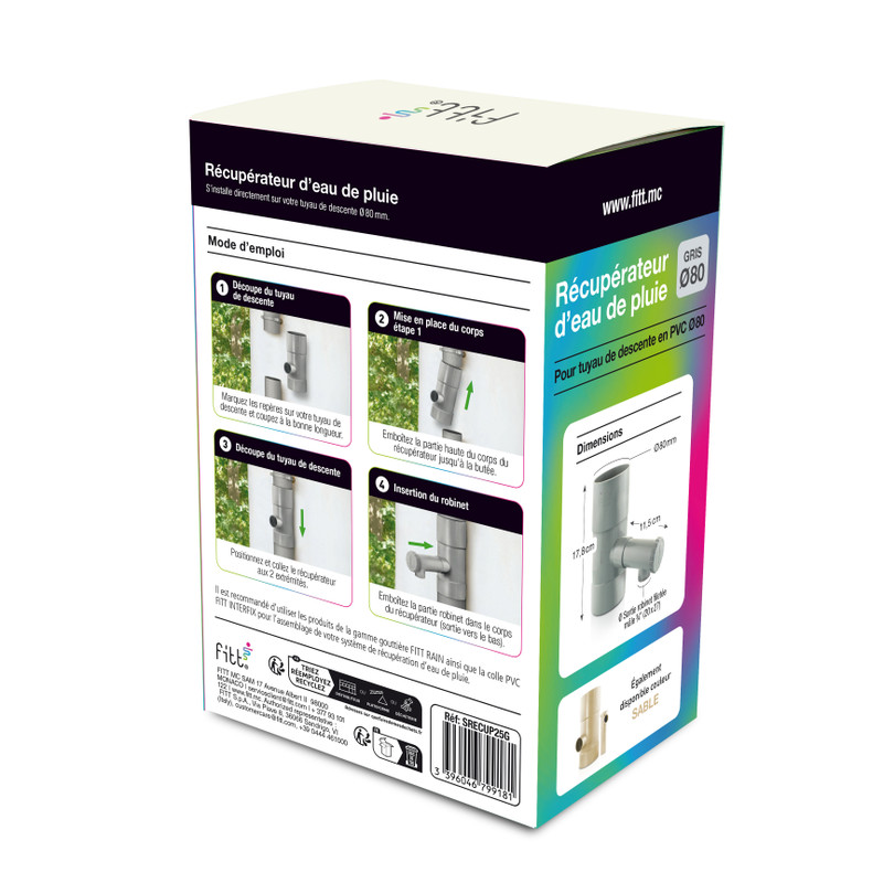Collecteur récupérateur d'eau de pluie pour tuyau de descente Ø80 En cas de pluie, l’eau s’écoule sur les parois du tuyau de descente pour être en partie dirigée vers le robinet ; si les ... Plus de détails