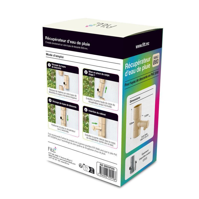 Collecteur récupérateur d’eau de pluie pour tuyau de descente Ø80