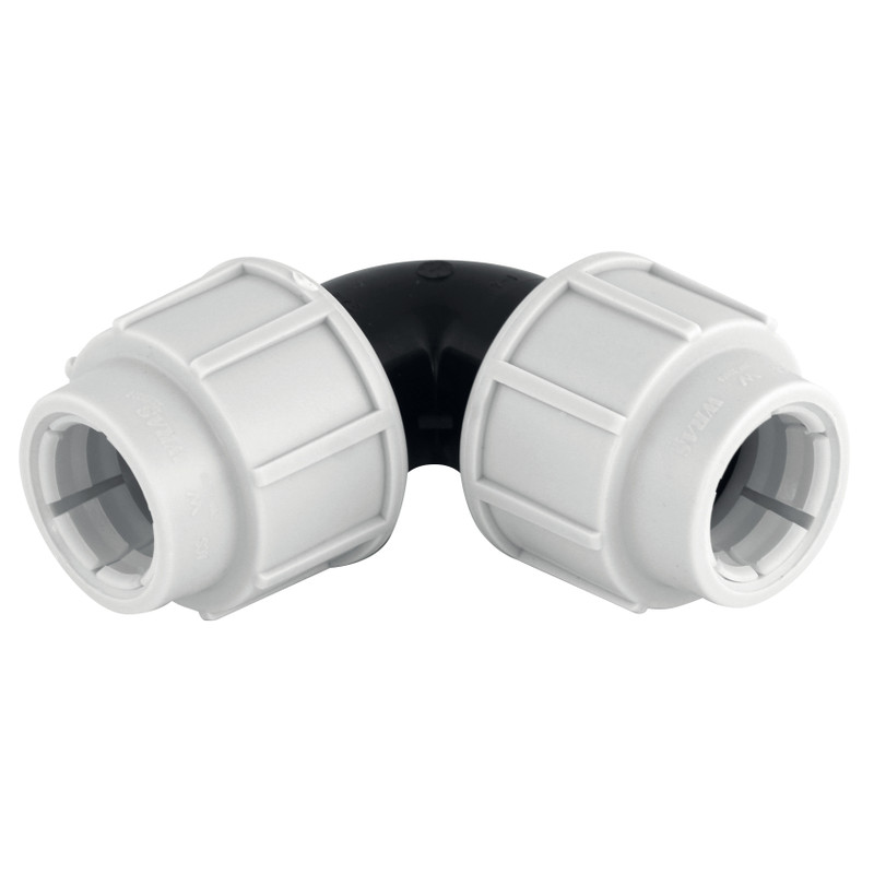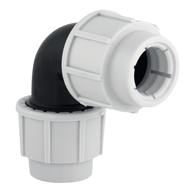 Raccords compression PN16 bars en polypropylène pour tuyaux polyéthylène haute et basse densité.