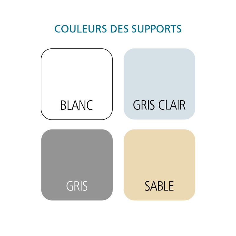 Couleurs des supports : blanc, gris clair, gris, sable