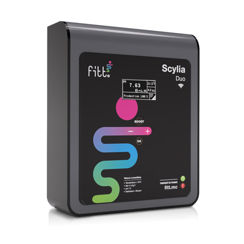 • Consigne pH modifiable entre 6,5 et 8,2 par pas de 0,1 (7,3 par défaut)