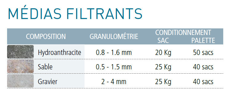 Débit indicatif : de 25 à 353 m3/h selon diamètre des filtres et vitesse de filtration.