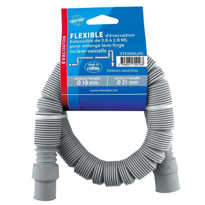 Flexible d’évacuation extensible machine à laver Ø19×21 longueur 0,8-2,80m