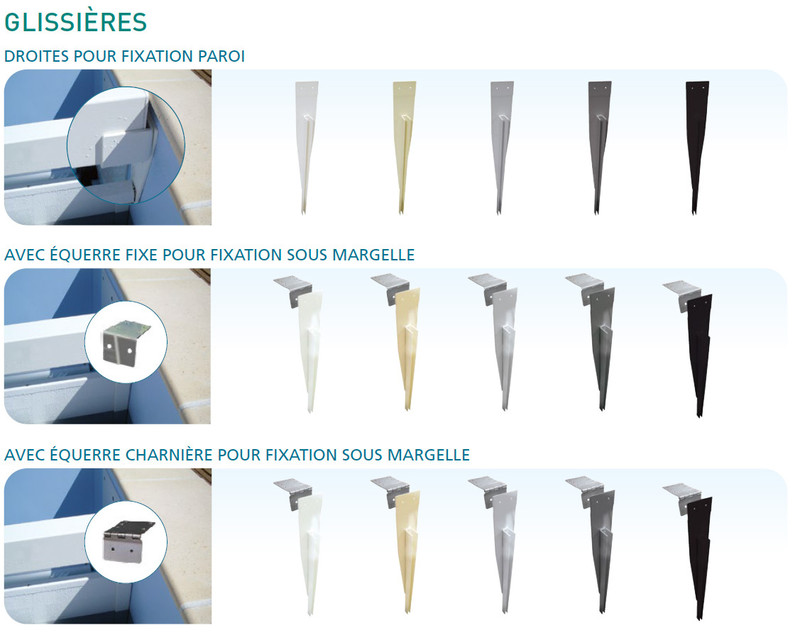 Glissières avec équerre fixe pour fixation sous margelle