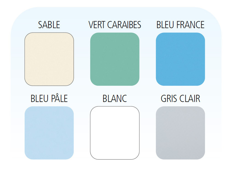 Sable, vert caraïbes, bleu france, bleu pâle, blanc, gris clair
