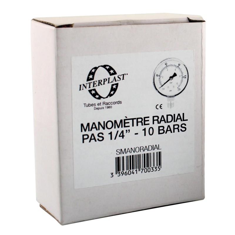 Manomètre radial 0-10 bars fileté Ø1/4″
