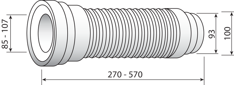 Pipe extensible pour le raccordement d’assainissement des WC. • Embouts femelles Ø 85 à 107 mm (WC) • Embouts mâles Ø 93 à 100 mm (évacuation) • Extensible et compressible (270 mm à ... Plus de détails