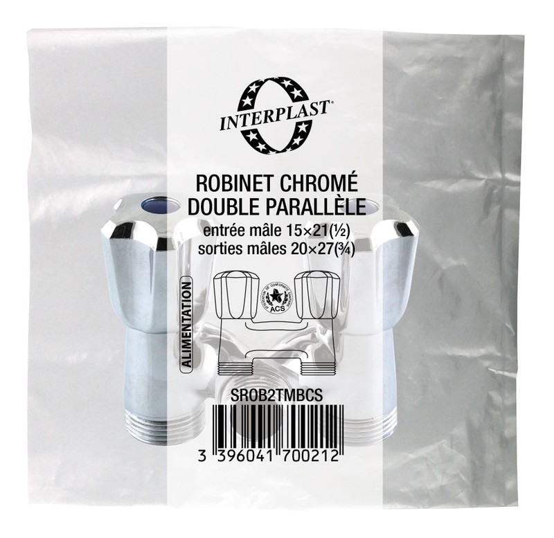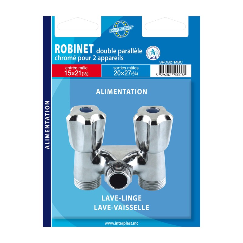 Robinet double parallèle pour 2 machines à laver Ø1/2″x3/4″