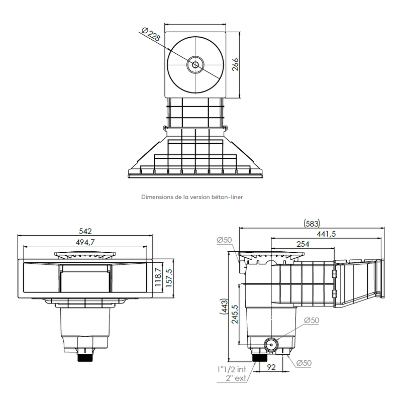+ Téléscope rectangulaire 246 × 266 mm (Évite de « re-découper » la margelle)