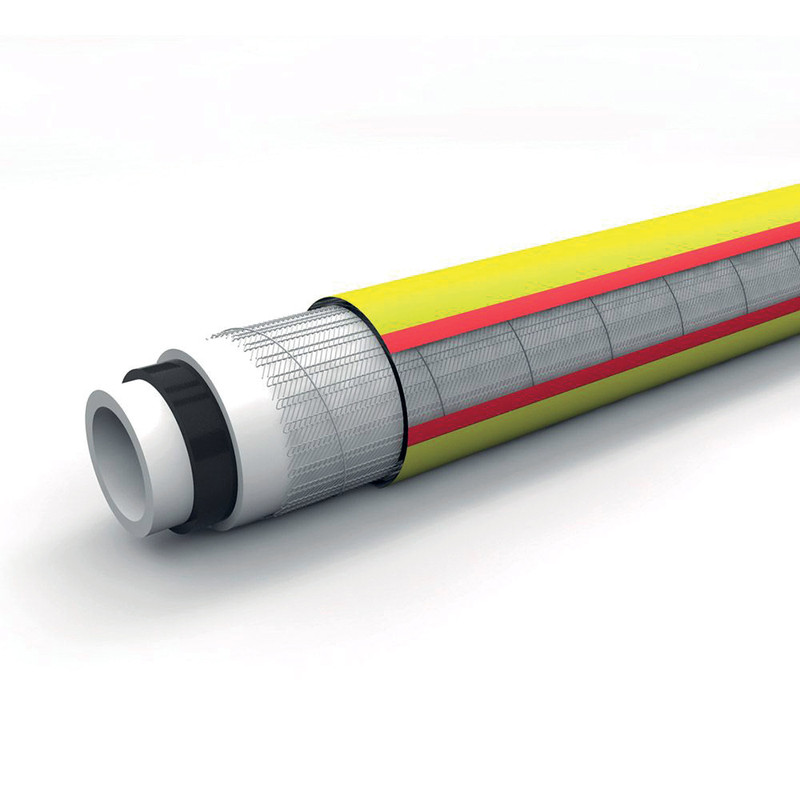 Tuyau tricoté 5 couches flexible pour l'arrosage loisir. Couche intérieure blanche et couche extérieure jaune opaque avec une bande rouge. Il est produit avec des matières premières de haute ... Plus de détails